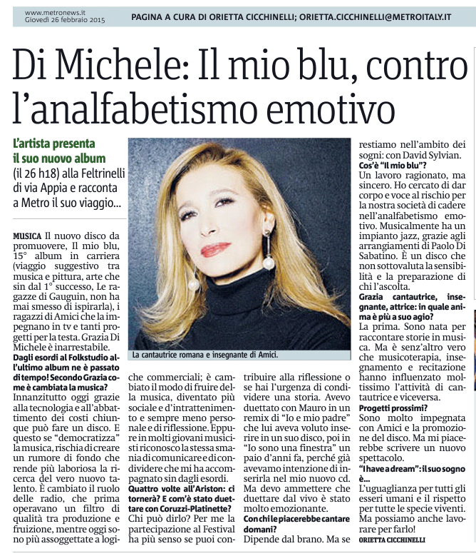 L’intervista alla cantautrice romana su http://www.metronews.it e sul cartaceo