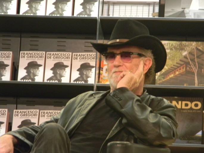 A passo d’uomo. Non nella locuzione avverbiale corretta ma nel trascorrere degli anni. Quelli di Francesco De Gregori, per la prima volta a tutto campo incalzato dal giornalista di Repubblica Antonio Gnoli in una serie di conversazioni. Un libro dove il cantautore romano racconta in 230 pagine intrise di vita vissuta, la sua infanzia, l’arte e la bellezza, la filosofia e la letteratura, il tempo che scorre, la famiglia, il suo rapporto controverso con la religione e con il partito (comunista, non fa più fico dirlo, ai tempi sì…). Parla anche di musica, ma non è il tema principale. Per la prima volta il Principe smette i panni di artista reticente e indossa quelli del comune mortale. Un colpo al cuore per chi aveva trovato nel brano Guarda che non sono io una conferma definitiva ai pochi dubbi sulla spigolosità del personaggio. L’incontro in Feltrinelli ha però, diversamente da quello avuto per la presentazione del cd dylaniano, ridato adito al canto dei fan. Il De Gre non è affatto cambiato. Niente foto sul palco, niente copie firmate aldilà del libro. E soprattutto niente domande. Cantata e suonata dai due sul palco. Forse non c’è molto da sapere di più rispetto a quello che si leggerà. O forse, l’autore di pezzi celebri vuole ancora mantenere un rapporto distaccato con il suo pubblico. L’importante è la consapevolezza. Certo è che sfogliando le pagine ci si trova davanti a un uomo molto più simpatico rispetto al previsto. Non vuole essere assolutamente considerato un intellettuale, ad esempio. Lui fa il suo mestiere, quello di cantante. Un musicista “con i calli, dalle mani sporche”. Così si definisce. Dopo aver fatto pace con Dylan e con il pubblico forse è giunto il momento di far pace anche con se stesso. Sempre che ci abbia mai litigato. Passo d’uomo è Edizioni Laterza