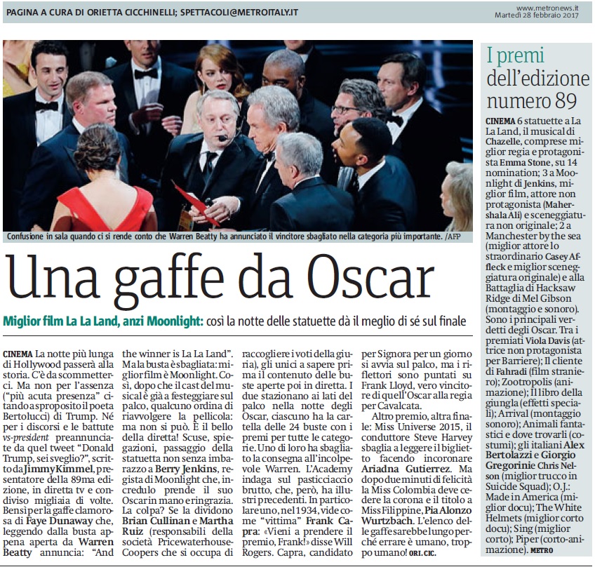 ori metro martedì 28 02 2017 2 OSCAR 2017 Condividi: Condividi su X (Si apre in una nuova finestra) X Condividi su Facebook (Si apre in una nuova finestra) Facebook Mi piace Caricamento...