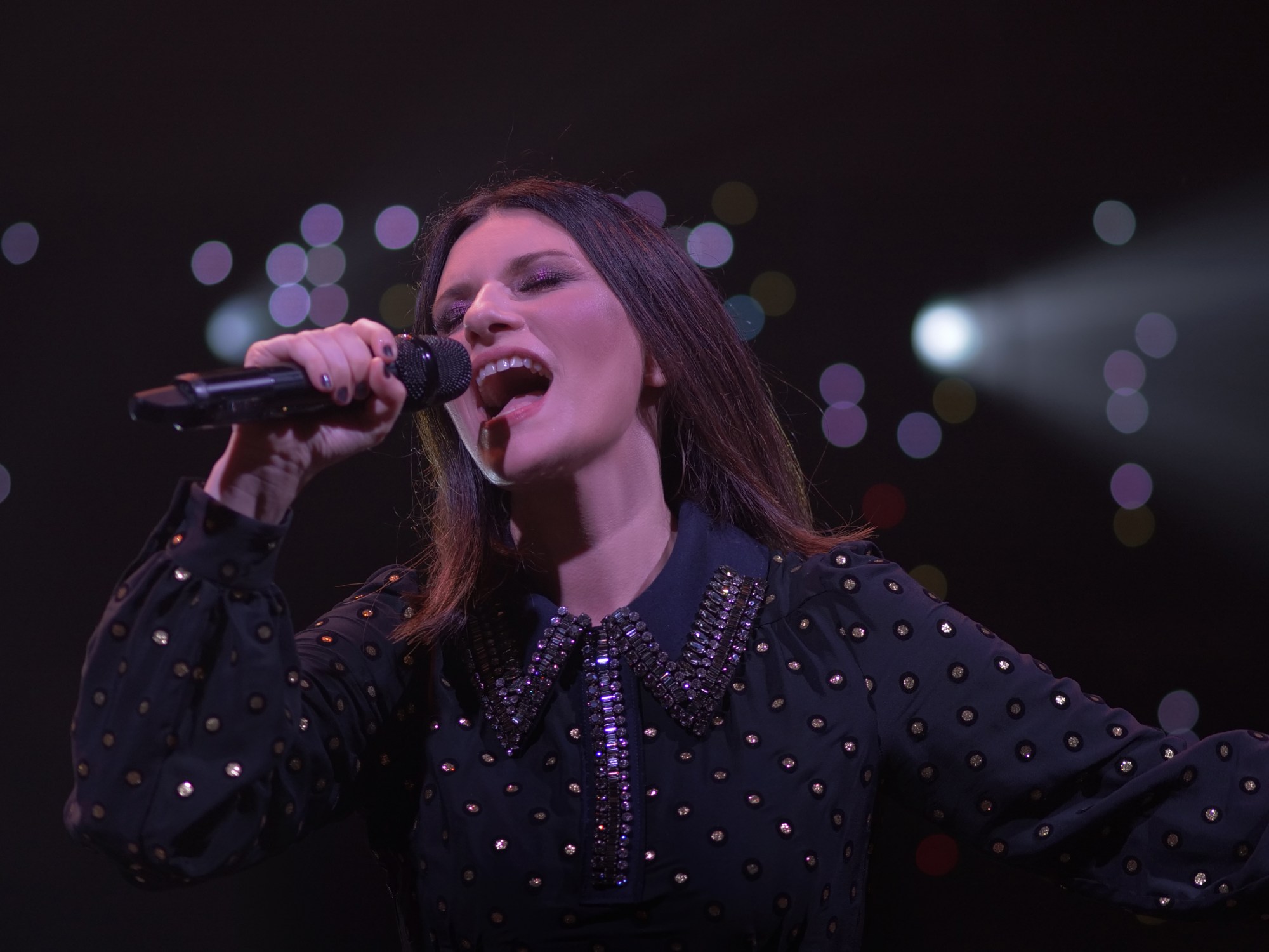 La Pausini ce l’ha fatta. E l’arena del Circo Massimo, solo una settimana dopo il live di Roger Waters è tornata a riempirsi in una serata romana umidissima, senza un filo d’aria. Caldo che non ha scoraggiato le migliaia di fan accorsi da ogni parte d’Europa per assistere all’esibizione della Regina del pop italico. La paura di non farcela, dichiarata a pochi istanti dall’inizio e ribadita sul palco ha lasciato spazio a poco meno di tre ore di hit, partendo da Non è detto (primo singolo dell’ultimo fortunatissimo disco) fino ad arrivare ad E.STA.A.TE (tormentone di questa stagione) secondo pezzo in scaletta, ripreso anche nello scoppiettante finale. Scoppiettante in tutti i sensi, con coriandoli sparati da 41 cannoni e fuochi d’artificio ovunque. “Sono venticinque anni che provo a meritarmi il vostro affetto e ancora non so se ci riesco. Sono una perfezionista, non sono sicura che andrà tutto bene ma ci metto il cuore. Sempre”, una delle sue frasi prima del secondo dei sei medley. Sono troppe le hit della Pausini, a cantarle tutte per intero non basta il tempo tiranno. Quindi si cerca di lasciarne traccia, cantandone anche solo un pezzetto. Il cuore, si diceva. Come quello del chitarrista Paolo Carta, compagno nella vita di Laura, toccato durante Lato destro del cuore. L’emozione con lacrime durante La Solitudine, i cambi d’abito (un vestito che, non fosse per la gonna, ricorda molto quello del suo esordio sanremese), Vivimi (ancora adesso una delle più intense) e tanto altro. Laura, prima donna ad esibirsi al Circo Massimo (fu anche la prima ad esibirsi a San Siro e a realizzare tour negli stadi italiani) per una notte si è presa Roma. Ed è protagonista spettatrice del concerto, come quando prende il telefono di una ragazza e riprende il pubblico. O quando fa salire sul palco un neodiciottenne con indosso solo i bermuda e un altra fan per cantare la celebre Non c’è. E, giochi di parole a parte, non c’è nulla di preparato. Vero animale da palcoscenico, se lo mangia e lo domina da artista consumata. Prossimo obiettivo? Lei risponde:”Il Colosseo!”. Audace, visto che Beyoncé non è ancora riuscita ad avere l’ok per realizzare il suo video ? Forse, ma niente è impossibile. E stasera si ripete, prima del tour mondiale in partenza dal 26 a Miami.