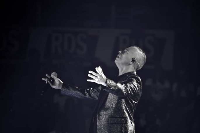 Non dev’essere stato facile per Eros salire sul palcoscenico del Pala Lottomatica ieri sera proprio mentre l’arbitro Bjorn Kuipers si accingeva a dare inizio alle ostilità del ritorno degli ottavi di Champions League. La sua Juve, infatti era impegnata nell’improba impresa di recuperare due reti all’Altletico Madrid. E mentre partiva Vita ce n’è, singolo trainante il nuovo lavoro del cantante romano, Cristiano Ronaldo infilava per la prima volta la porta spagnola. Il suo eroe, l’eroe di milioni di tifosi bianconeri. Ma Ramazzotti, apparentemente, non sembrava curarsene. Presentatosi con un giubbotto di pelle a frange, maglietta nera e jeans ha regalato due ore e mezza di musica senza interruzione al pubblico (in verità il palazzetto presentava numerosi spazi vuoti anche sotto il palco) comunque molto caloroso. Fin troppo tecnologico al punto che Ramazzotti ha dovuto più volte chiedere il favore di abbassare i telefonini e godersi lo spettacolo, magari alzando le mani e ritmandole a tempo. Niente da fare, nell’era social dove ogni cosa va trasmessa a tutti (rigorosamente in diretta, anche con scarsa qualità). Eros ha spaziato in 37 anni di carriera, insistendo molto sul nuovo disco nella prima parte dello show e andando a ritroso nella seconda tralasciando quasi totalmente il periodo anni 80-90 DDD (quello di In certi momenti, Musica è, In ogni senso per intenderci) e gli ultimi 15 (meno fertili, sicuramente, ma forse degni di maggiore attenzione). Anche perché, il suo pubblico è legato a quel periodo e da lui si aspetta quel ritmo, quel suono, quei brani che hanno accompagnato almeno due generazioni. Alla fine, comunque, è stato un successo. E lo sarà anche per le prossime tre tappe. Ah, anche la Juve ce l’ha fatta. Ha vinto 3-0 e per Eros è stata davvero festa grande.